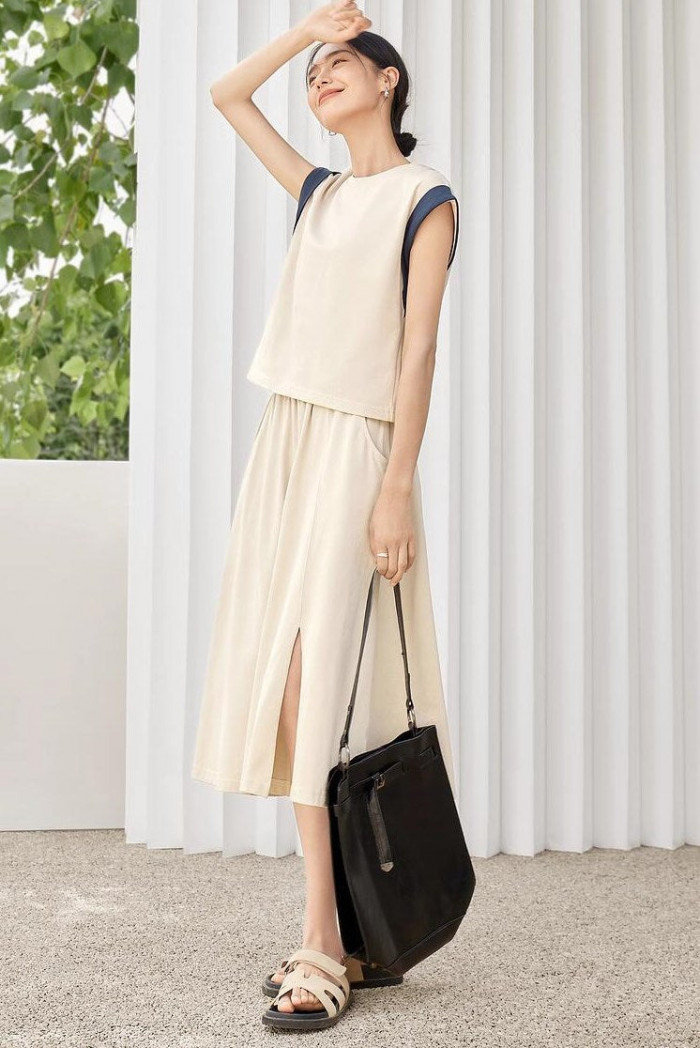 ワンピース風で魅せる上品なノースリーブセットアップ