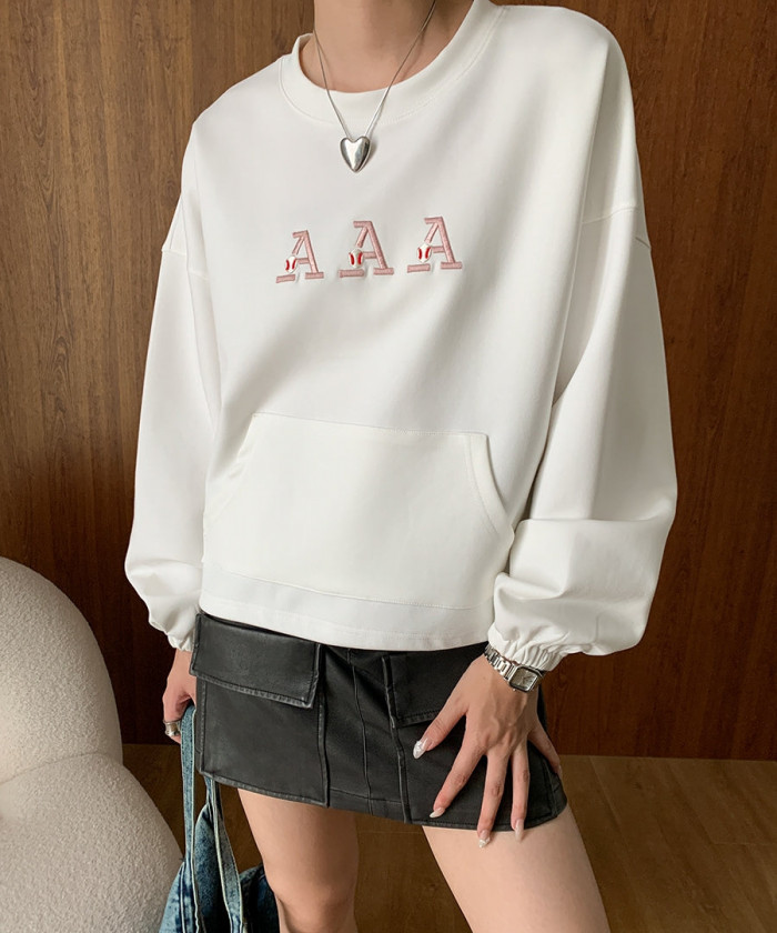遊び心を効かせる!刺繍入りラウンドネックスウェット