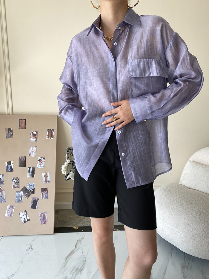 スタンダードなデザインやシルエットで、どんなアイテムとも分け隔てなく組み合わせることができるストレートシャツ。トレンドカラーのパープルを用い、カジュアルなのに品のある印象を演出します。羽織に使っても、上から別の羽織を着ても、とにかく映える色味なのでおしゃれに着回せます。