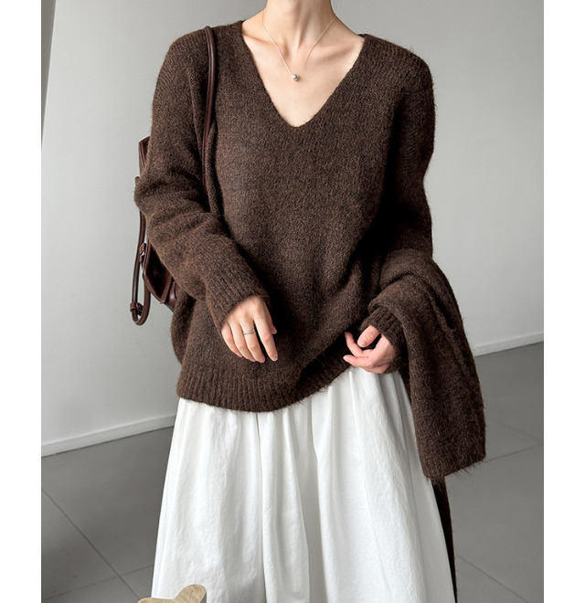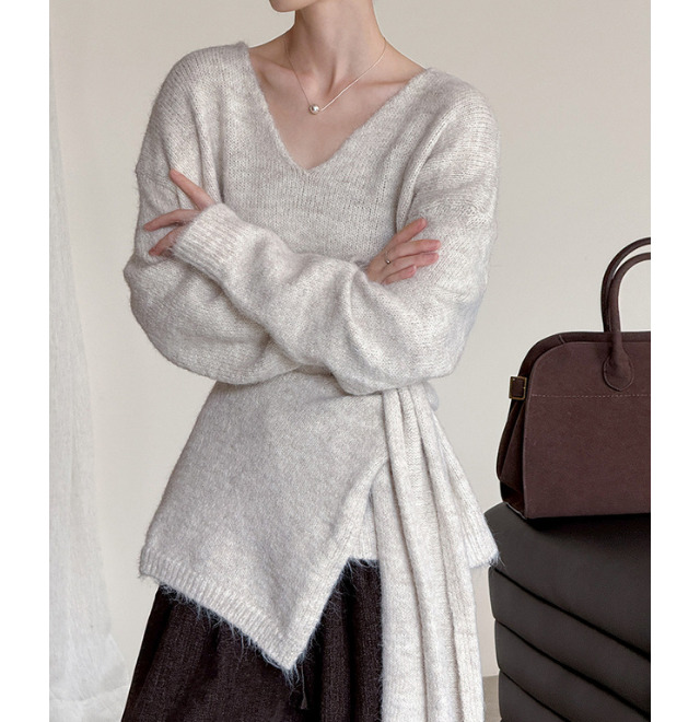 一枚でレイヤードスタイルが完成するショールセットのニット。