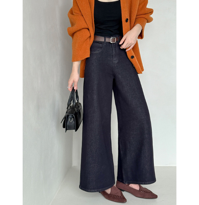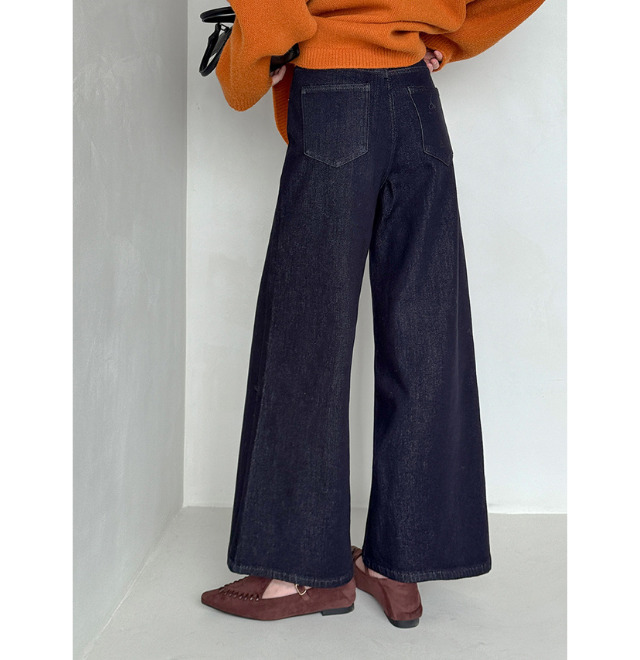 濃インディゴカラーだから、カジュアル度の高いデニムもきれいめに着こなせて。