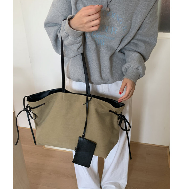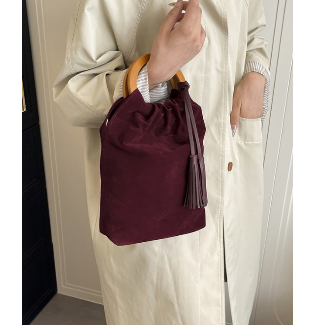 大人のデイリースタイルに重宝する巾着タイプのハンドバッグ。