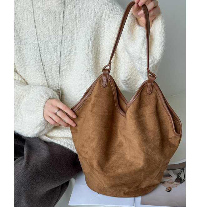 まろみ感のあるブラウンカラーに、しなやかなスエード調の素材とで大人の余裕を感じさせます。