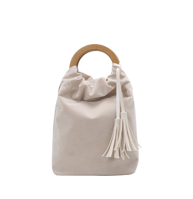 やわらかなコーデュロイ素材にタッセルを添えた巾着バッグ。季節感のある風合いと、ころんとしたシルエットが大人の可愛らしさを引き立てます。