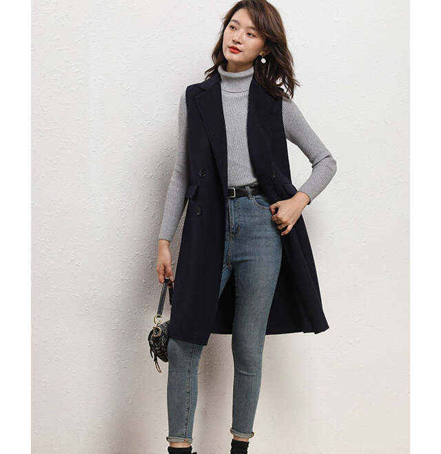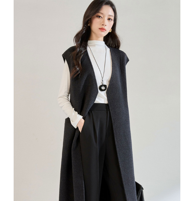 柔らかく上質な素材感が魅力のロング丈ベストは、縦長ラインを強調しスタイルをすっきりと見せてくれます。シャツワンピースやタートルネックに重ねると、大人らしい余裕のある秋コーデに。小物はブーツやレザーアイテムで季節感をプラスするとバランス良く仕上がります。