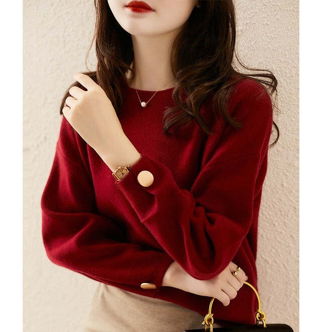 無駄のないシルエットで着回し力抜群の一枚。ボルドーなら落ち着いた大人の華やかさを演出でき、デニムと合わせてカジュアルに、スカートと合わせてフェミニンにと幅広く活躍します。アクセサリーを効かせれば、シンプルながらも存在感のあるスタイルに。