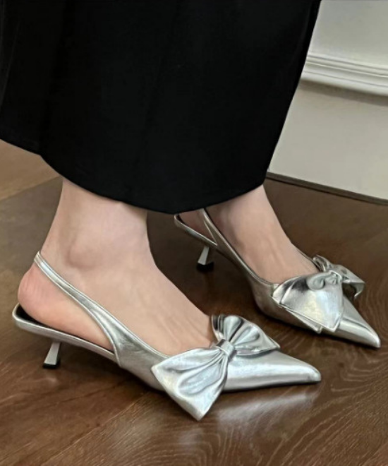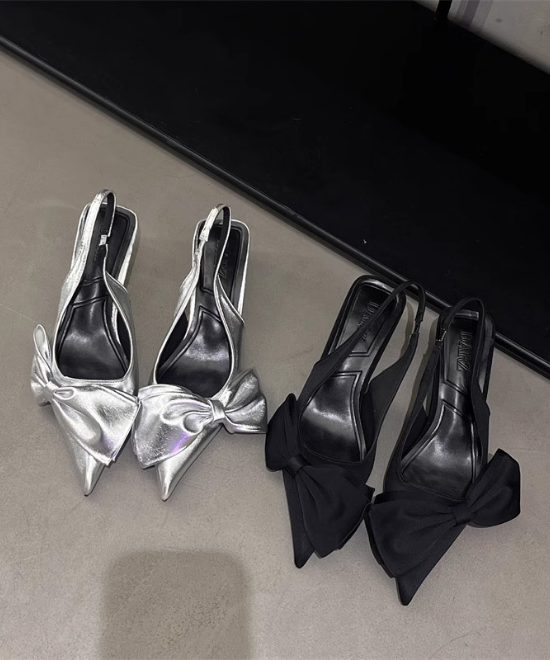 今季注目のリボンも、ブラックやメタリックなら上品さをキープして大人の雰囲気に。シャープなポインテッドトゥが華やぎを添え、特別な日のお出かけにもぴったり。靴下とのレイヤードで日常にも使える、シーズンレスな優秀ミュールです。