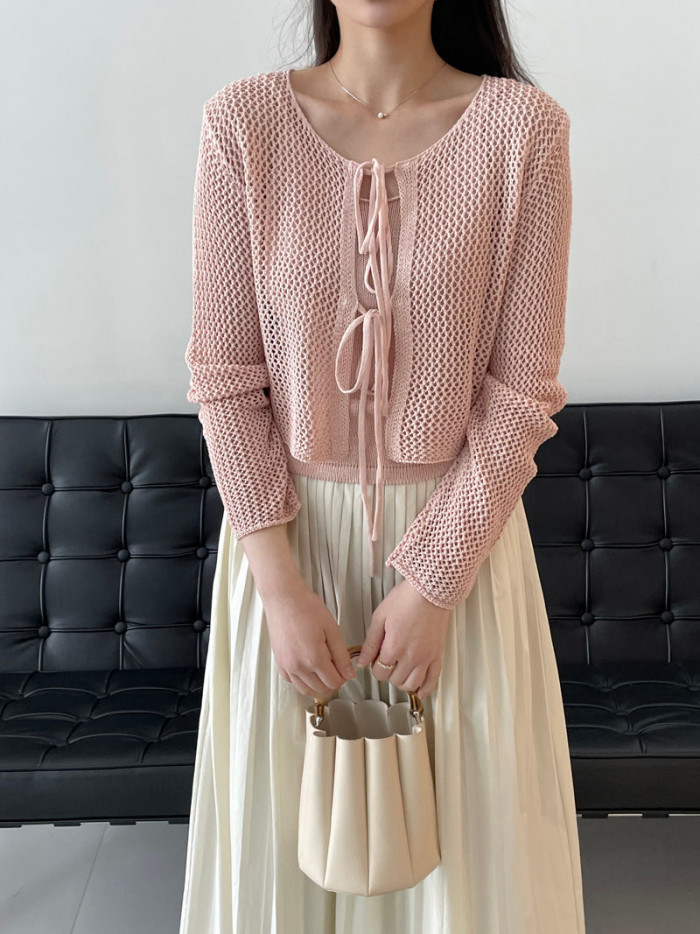 メッシュ素材が視覚的なアクセントに。メッシュカーディガン