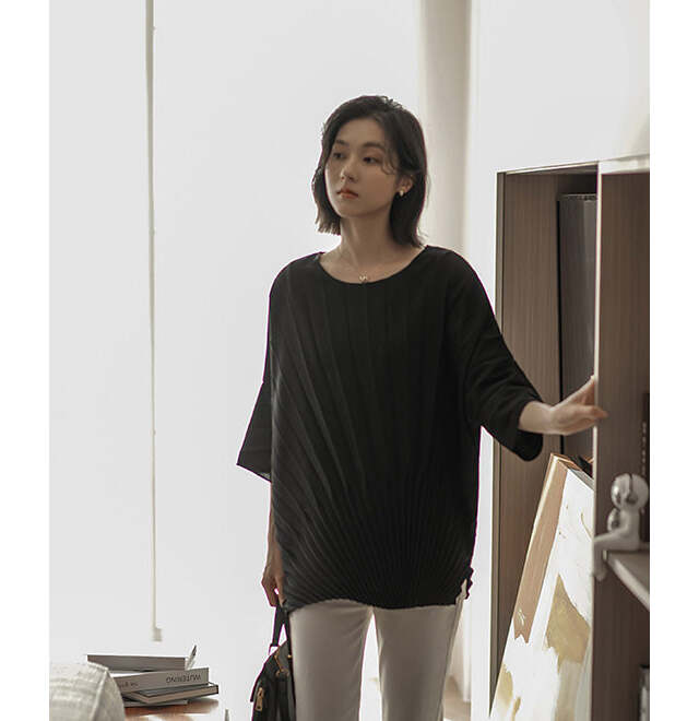 アクセントデザインがおしゃれな印象。プリーツカットソー