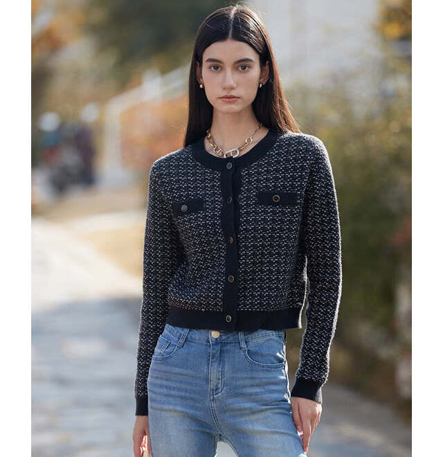 ふっくらとしたツイード素材のチェックカーディガンは、秋の軽アウターとしても活躍。ラウンドネックの優しい印象が女性らしく、Tシャツやデニムに羽織るだけで、カジュアルの中に品のあるムードをプラスします。