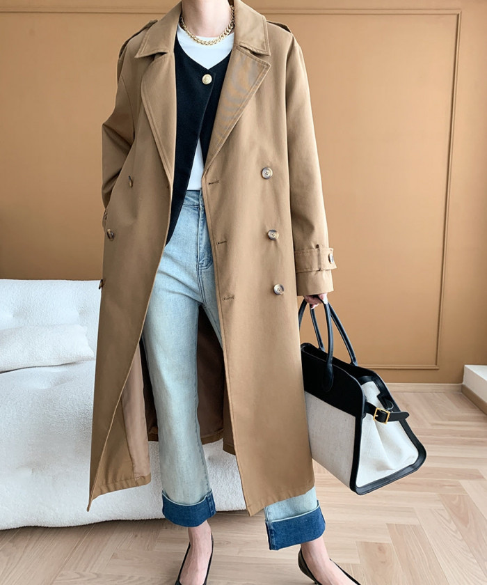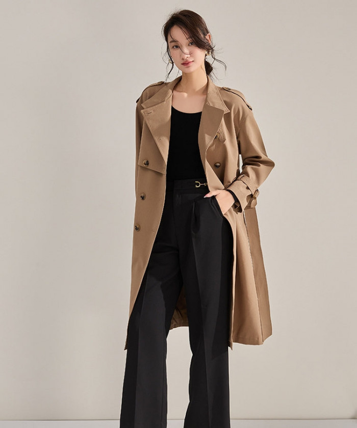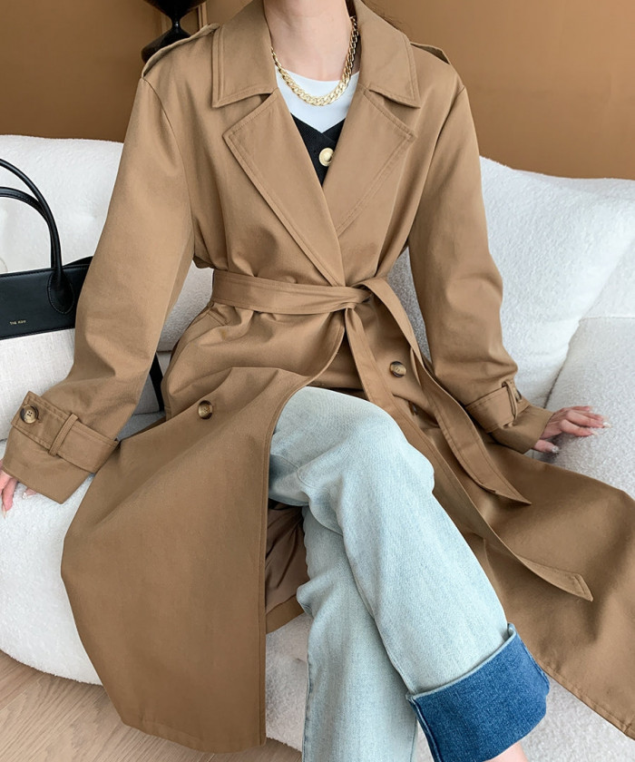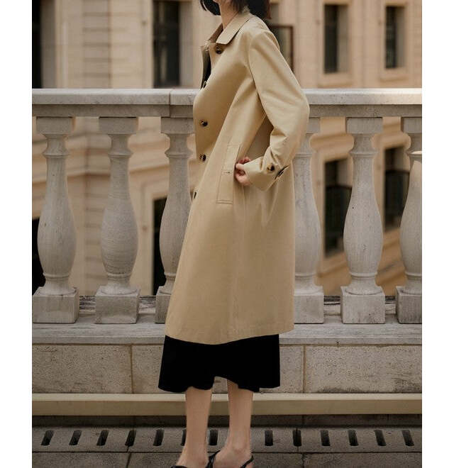 クラシカルなダブルボタン仕様で、ベーシックながら上品な印象に。ミドル丈なら、パンツにもスカートにもバランスよく合わせられます。今年らしく着るなら、足元にボリュームのあるブーツを合わせて、軽やかなAラインシルエットを強調して。動きやすく、きれいめにもカジュアルにも使える万能な1枚です。