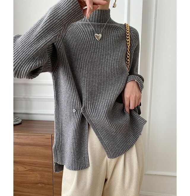 リブニットと言えばコンパクトなサイズ感のものが多い中、こちらはゆとりを持たせた大人っぽいセーター。編地がストライプ柄のように縦のラインを強調し、のっぺり見えを回避。加えてスリット入りでシャープな印象に。ニットのほっこり感を程よく無くしたハンサムな1枚。