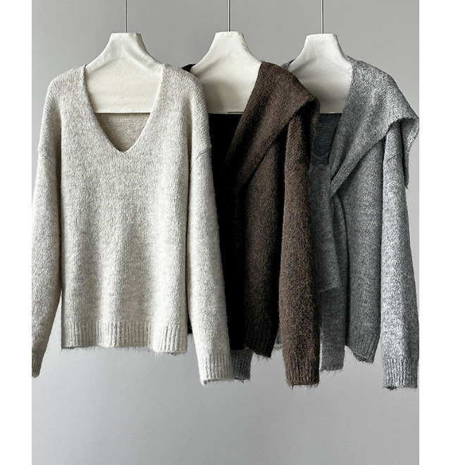 いくつもの糸を編み込んだミックスヤーンが、穏やかな表情をつくるカーディガン。