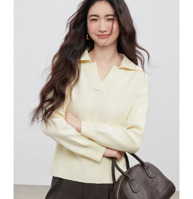 品よくラフに。ポロ襟が映える大人のリラックスニット