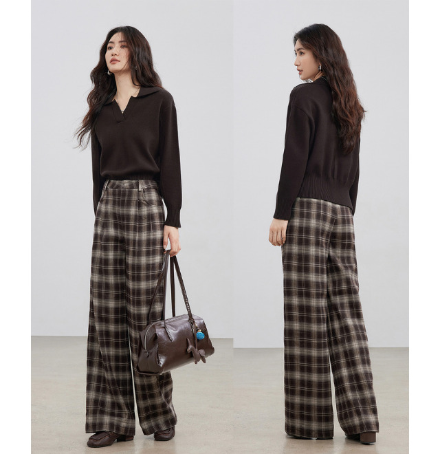 ゆったりシルエットのニットも、シックなブラウンなら洗練されたムードが漂います。