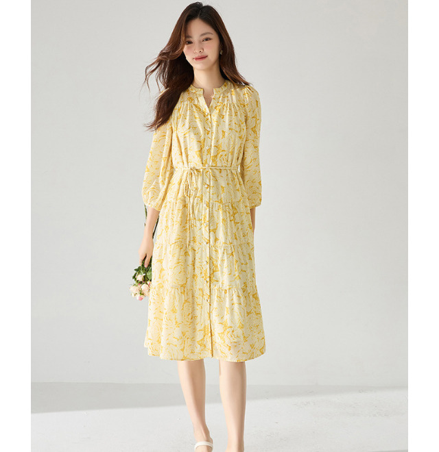 軽やかな質感と柔らかいプリントデザインがかわいらしい1枚。1枚でサラッと着るスタイルはもちろん、アースカラーのカーディガンを羽織れば寒暖差にも対応しながらこなれたスタイルに。