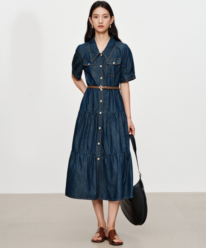 「季節をまたいで楽しむ!」軽やかさと動きやすさを両立したティアードデニムフレアワンピース