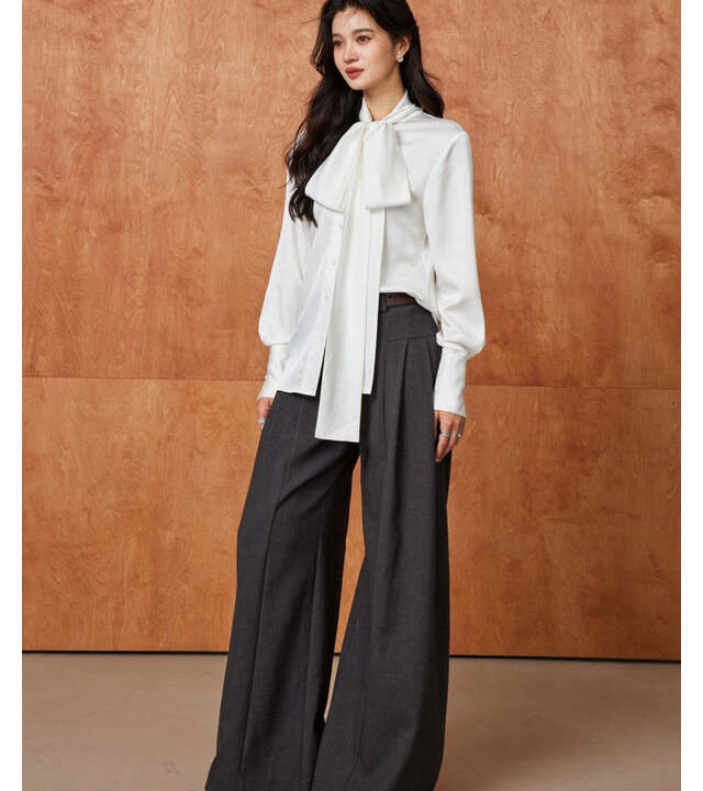 「ラクなのにきれい見え」を叶えてくれるグレーのワイドパンツ。シンプルな白シャツを合わせれば上品に、スウェットなら抜け感のある大人カジュアルに。着回しの幅が広がる優秀アイテムです。