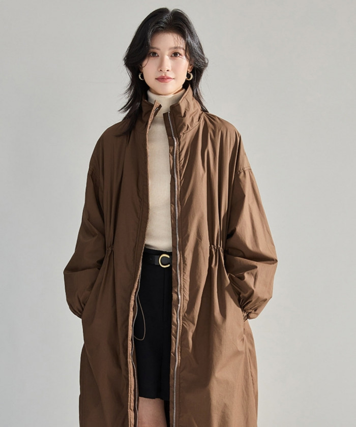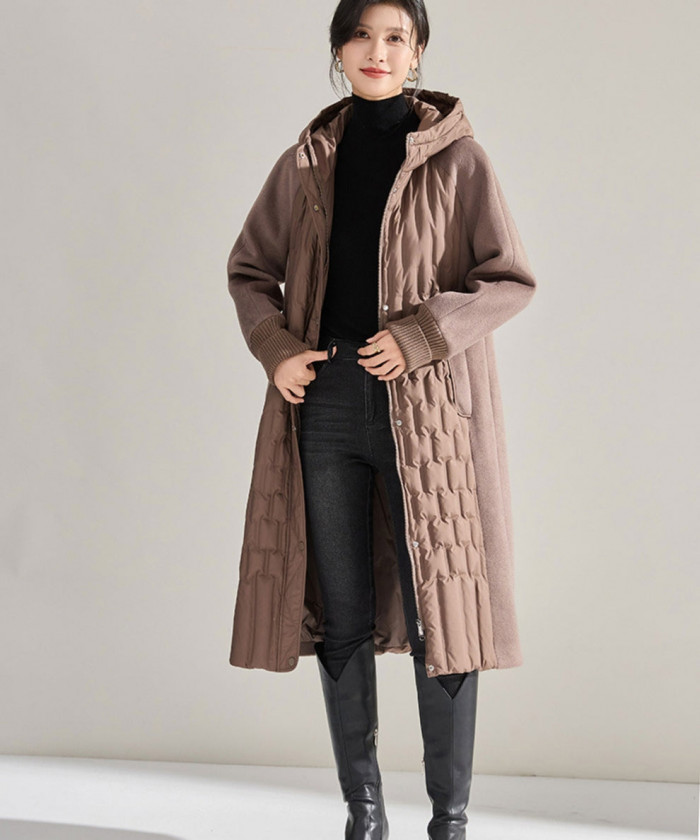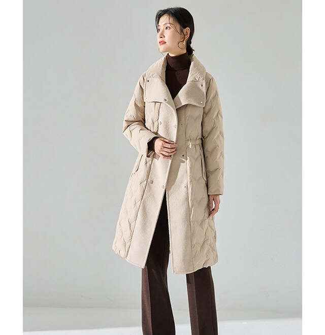 縦ラインを強調したデザインで、体のラインをきれいに見せてくれる一枚。ウエストが自然にシェイプされており、ダウン特有の“もこもこ感”を感じさせません。膝下までのロング丈は冷気をしっかりガードしながらも、上品でエレガント。タートルネック×スリムパンツで合わせれば、冬でも“縦長シルエット”をキープ。パンプスやショートブーツを合わせると、より都会的な印象に。