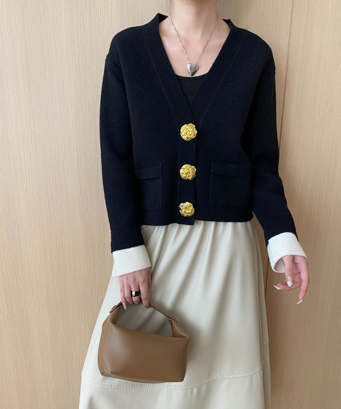 ゴールドボタンが映える上品ニットカーディガン