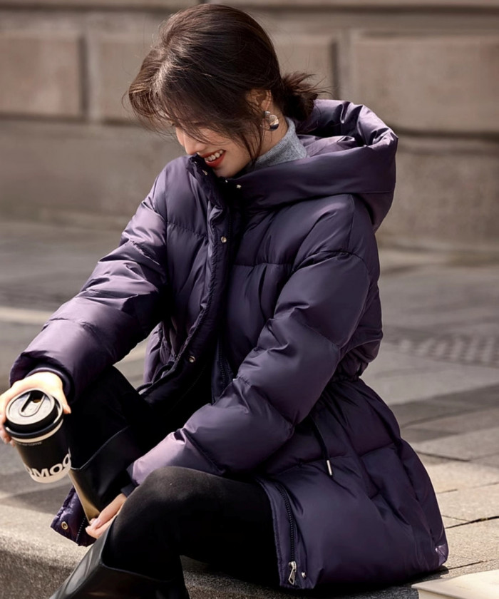 腰まわりまで包み込むミドル丈ダウンジャケット