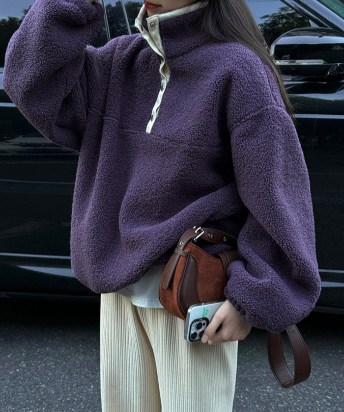 見た目にも暖かいボア素材は、冬のアウトドアの定番。軽くて動きやすく、焚き火やお散歩などリラックスシーンにも最適です。スタンドカラーが首元まで包み込み、防寒性も抜群。ボトムは細身のパンツでコンパクトにまとめたり、ワントーンで統一してラフだけど洗練された印象に仕上げるのもおすすめです。やさしい質感のボアが、カジュアルスタイルに柔らかさを添えてくれます。