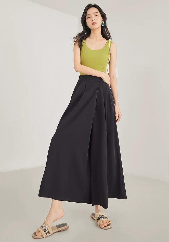 リラクシーな雰囲気を楽しみつつ、きちんと感をキープできるのがカジュアルワイドレッグパンツ。やわらかな素材とストンと落ちるラインで、シンプルなニットを合わせても品よくまとまります。トップスをウエストインして、ベルトや小物でポイントをつくると脚長効果も抜群。オン・オフ問わず着まわせる、大人のための定番アイテムです。