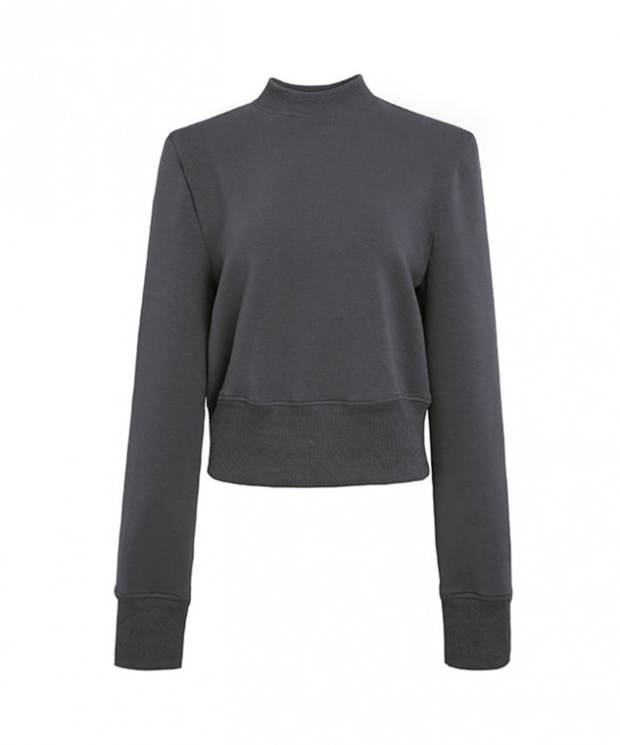 ゆったりしているけれど、長いリブで裾にかけて細くなるテーパードライン、長めの袖で全体的にモードなシルエットです。