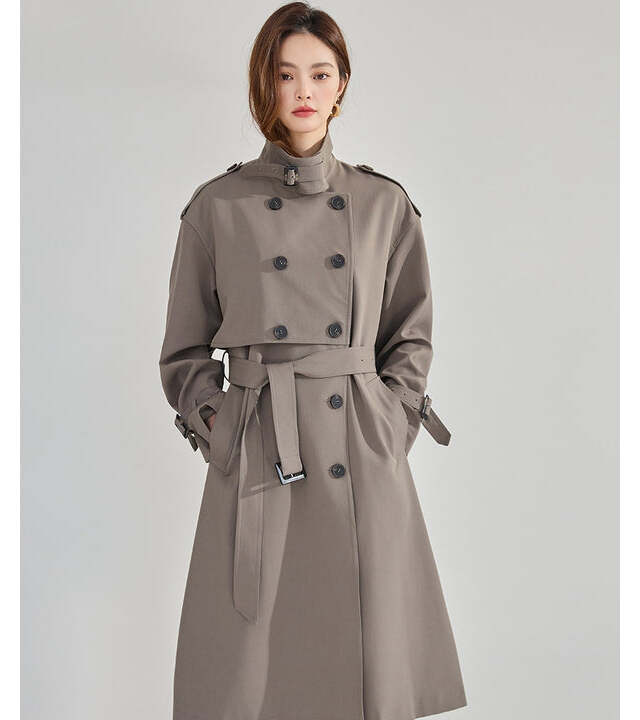 トレンチコートと言えばベージュ系が多い中、素敵なグレーカラーのものを見つけました。首元や袖口にもベルトの付いた本格派デザイン。加えてダブル仕立てでハンサムに魅せつつ、グレージュ寄りの柔らかな色味に女性らしさも感じられるハイセンスな仕上がりです。