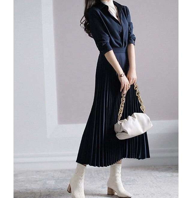 細身のシルエットですが、たっぷりの布量をコンパクトにまとめたプリーツディテールがふんわりと広がってくれるワンピース。1枚のアイテムの中で、プリーツが縦に走る動きを出す・ハイウエストで切り替えてドッキング風にしてくれる、といった複数の動きがあるので、軽やかな印象で着用できます。