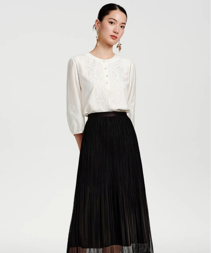 フラワー刺繡ブラウス