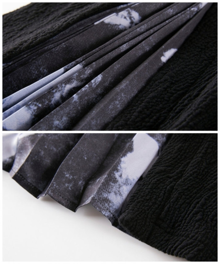 歩くたびにちらりと見える抽象的な絵画のようなスカートや、チャイナ風の飾りがアクセントです。