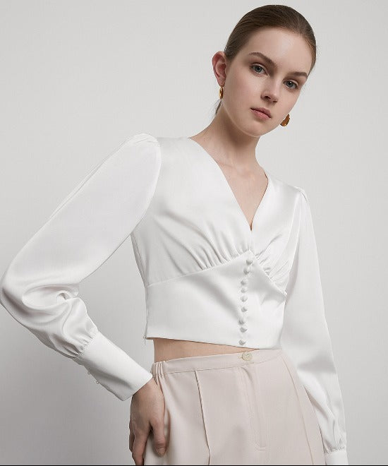 ふんわりギャザーでニュアンスを加える「ショートギャザーブラウス」