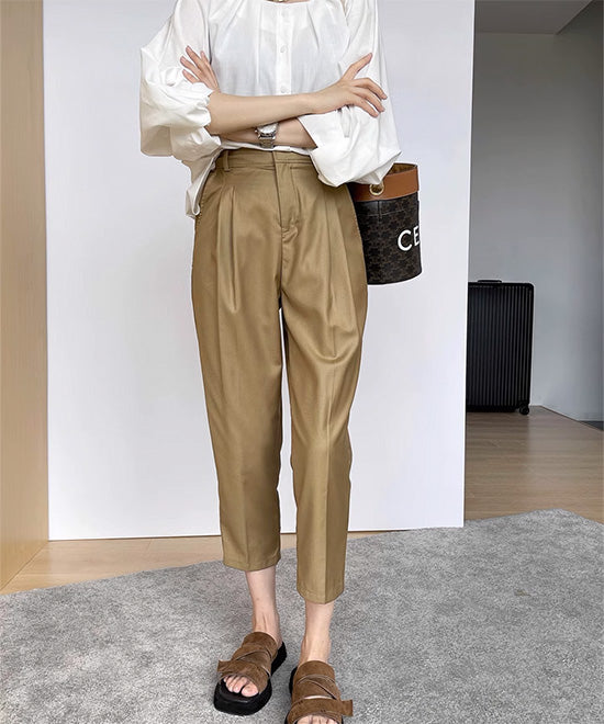 程よい光沢で美脚見え「ハイウエストタックパンツ」