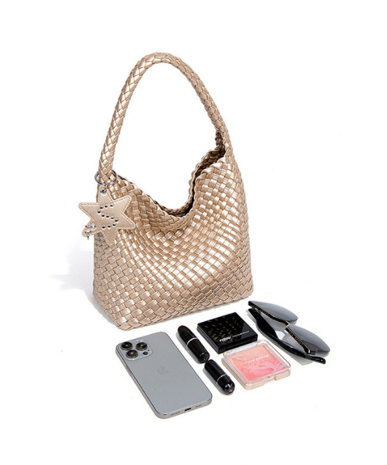 手織り風の立体的な素材が光をやさしく反射し、ナチュラルな存在感を放つバッグ。ワンショルダータイプで持ちやすく、コートとのバランスも取りやすいサイズ感です。暖かみのあるテクスチャーが、冬の街の灯りと好相性。シンプルなニットワンピースやロングコートに合わせて、肩の力を抜いた上品カジュアルに。