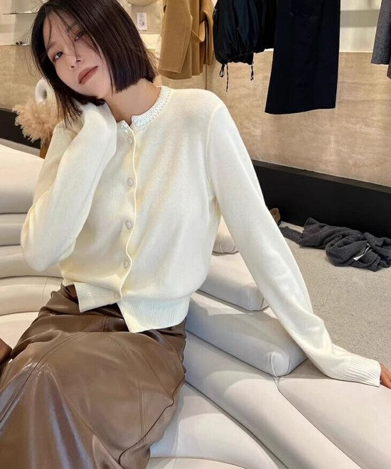 上品カジュアルの定番「ラウンドネックカーディガン」
