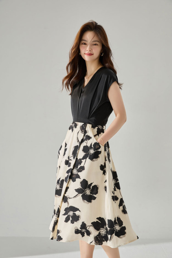 すらりと見せる大人の花柄「シングスリムフラワーワンピース」