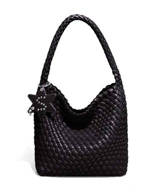 メッシュ素材でブラックでも柔らかな印象。スタッズのチャーム付きです。