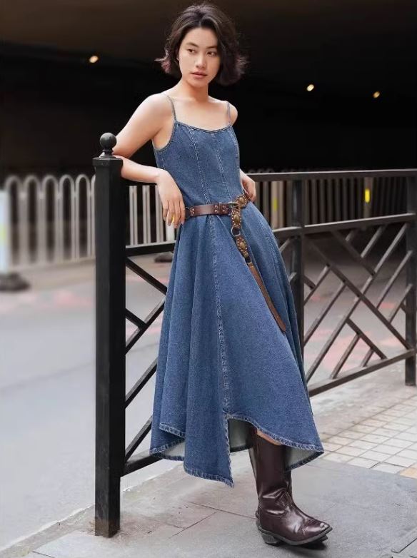 個性派アイテムも受け止めるデニムワンピ-ス