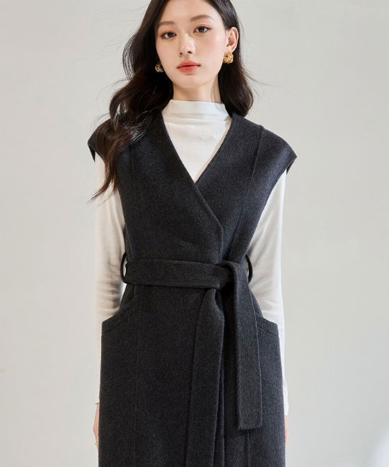 スタイルアップと体型カバーが一度に叶うロング丈ベストは