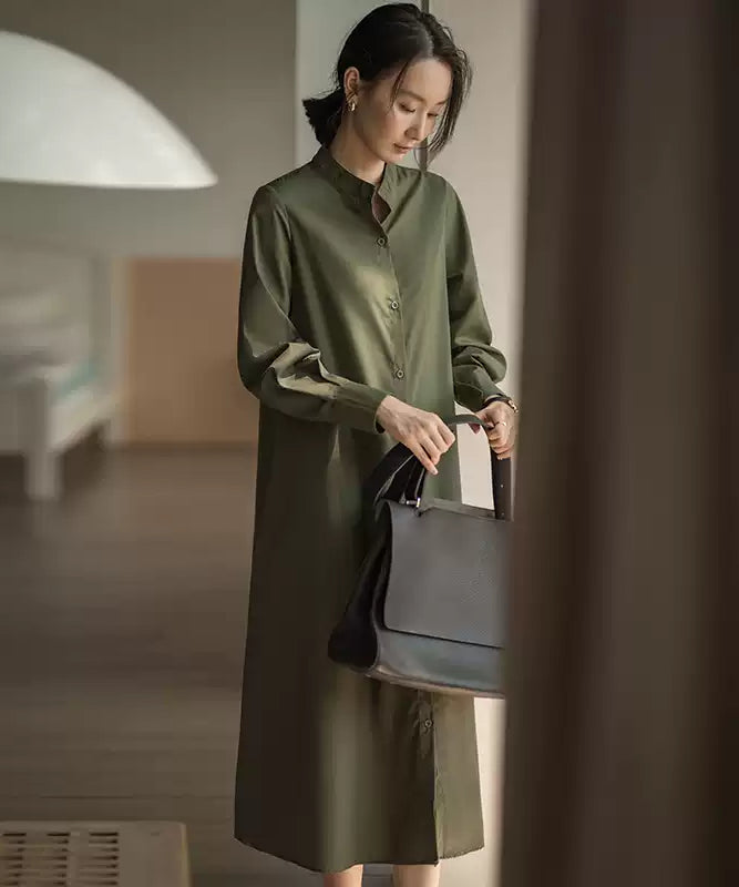 凛とした佇まいの「スタンドカラーシャツワンピース」