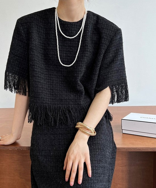 シンプルながらも美しいシルエットが際立つセットアップ。トップスとスカートが絶妙に調和し、すっきりとした印象を与えてくれます。セットで着ればきちんと見え、単品使いすれば通勤や食事シーンにも活躍。「特別感を出したいけど着回しも重視したい」大人の女性にぴったりの一着です。
