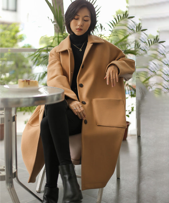 ショールカラーが柔らかな曲線を描き、上品な印象を演出。首元を包み込むデザインが小顔効果もあり、落ち着いた佇まいを叶えます。シンプルなニットワンピースやロングスカートに合わせれば、控えめな中にも華のある大人スタイルに仕上がります。一枚のコートが、日常を少しだけ特別に変えてくれるはず。
