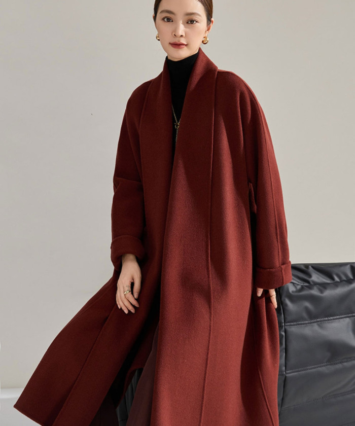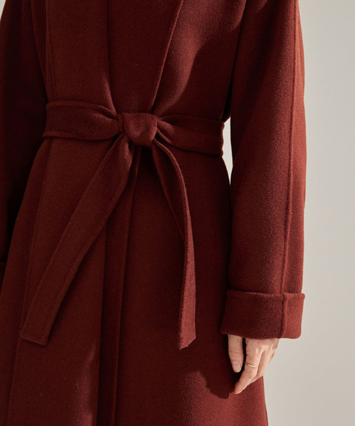包み込むようなシルエットとウエストベルトの組み合わせが、エレガントな印象を与える一枚。ウールの温もりと落ち感のあるラインが、自然体の美しさを引き立てます。ラフに羽織ってもきちんと見えるバランス感が絶妙で、休日のカフェシーンからフォーマルなお出かけまで幅広く活躍します。