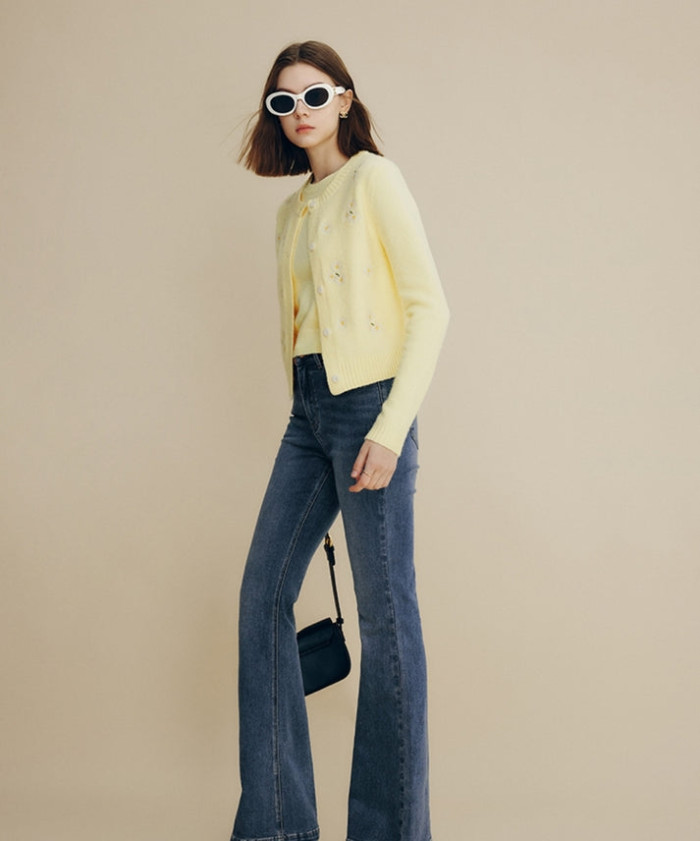 ミニマムなサイズ感で、ニットでも上半身がコンパクトにまとまり、スタイルアップして見えますね。