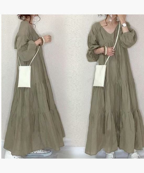春夏から大人気のティアードデザインも、色をカーキに、そして袖にボリュームを持たせることで秋らしいフォークロア調に七変化。既にティアードワンピースをお持ちの人、周りとかぶりたくない人にもおすすめです。アウターはフリンジ付きのショールが合いそう。