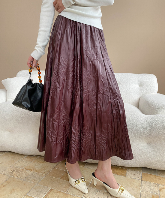 ひと昔前には考えられなかった、軽やかな質感のレザースカート。ふんわりと広がるフレアーラインも斬新ですが、ソフトプリーツ加工でよりエレガントな表情に。レザーアイテムに苦手意識のある大人世代にも気軽に着てもらえたら、そんな造り手の思いが伝わります。
