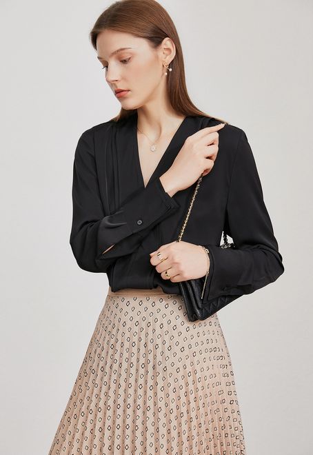 スッキリ見えを叶える「Vラインロングスリーブブラウス」