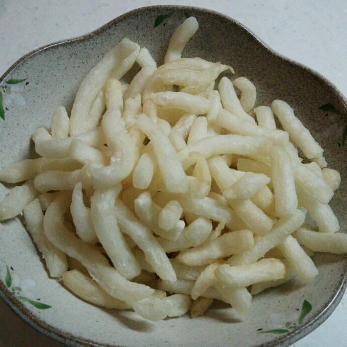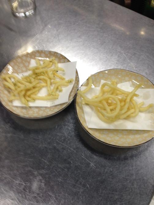 こちらは長めに揚げたもの。少し黒っぽい仕上がり。こちらはカリカリ系のフライドポテトのような食感です。どちらも美味しいので、お好みで揚げる時間を調整することをオススメします!