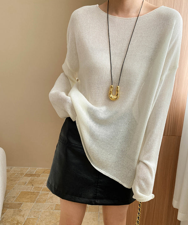 リネンの柔らかな風合いとシアー感が女性らしさを後押ししてくれるニットトップス。中に着るインナーでおしゃれを楽しむもよし、合わせるボトムスで印象を変えるもよしの万能トップスです。